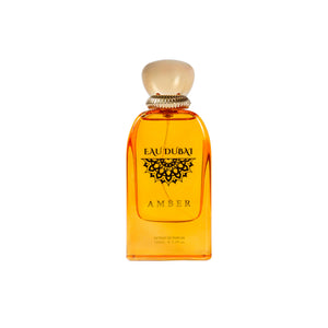 Eau Dubai Amber celebreaza caldura, profunzimea si luminozitatea prin numele "Amber" (chihlimbar) - rasina fosilizata pret ioasa care simbolizeaza timpul, puterea si frumusetea vesnica. Chihlimbarul natural a fost pretuit de-a lungul mileniilor ca bijuterie si ingredient magic. Cutia neagra cu logo "AMBER" in relief auriu ardent evoca focul desertului, caldura soarelui Dubai si puterea luminii chihlimbarului. Flaconul chihlimbar-auriu transparent cu capac auriu mat sculptural simbolizeaza pretiozitatea, caldura naturala si eleganta rafinata - un design care comunica lux discret si rafinament mediteranean-oriental.