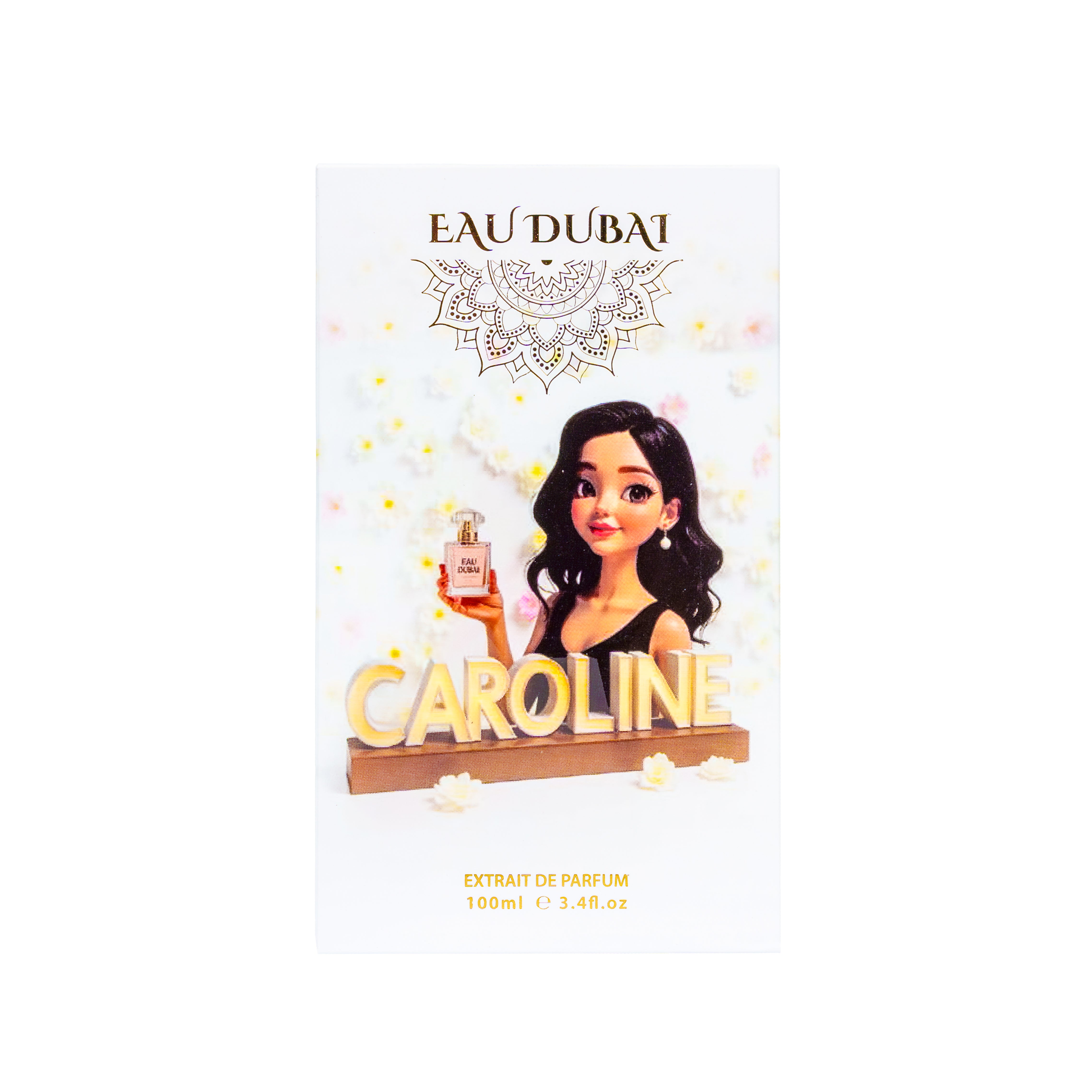 Descoperiti parfumul imbietor EAU DUBAI Caroline - o compozitie gurmand-dulce sofisticata care imbina caldura vaniliei cu absolutul de tonka, chihlimbarul senzual, moscul fin si zaharul brun caramelizat, creand o experienta olfactiva delicioasa si feminina care captiveaza simturile.