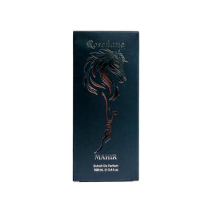Parfumul Rosehane Mahir Black este o creatie masculina puternica si misterioasa dedicata barbatului increzator, sofisticat si magnetic, simbolizat de capul maiestuos de cal argintiu care decoreaza capacul flaconului. Cuvantul "Mahir" evoca maiestria, abilitatea si excelenta. Aceasta varianta BLACK celebreaza puterea, misterul si eleganta masculina suprema prin culoarea albastru foarte inchis aproape negru care evoca noaptea profunda, misterul si autoritatea. Formulat ca Extrait de Parfum, aceasta concentratie ultra-premium de 100 ml ofera o persistenta exceptionala si o intensitate extraordinara care evolueaza fascinant pe piele, dezvaluind straturi complexe de prospetime aromatica, condimente intense si profunzime lemnoasa senzuala.