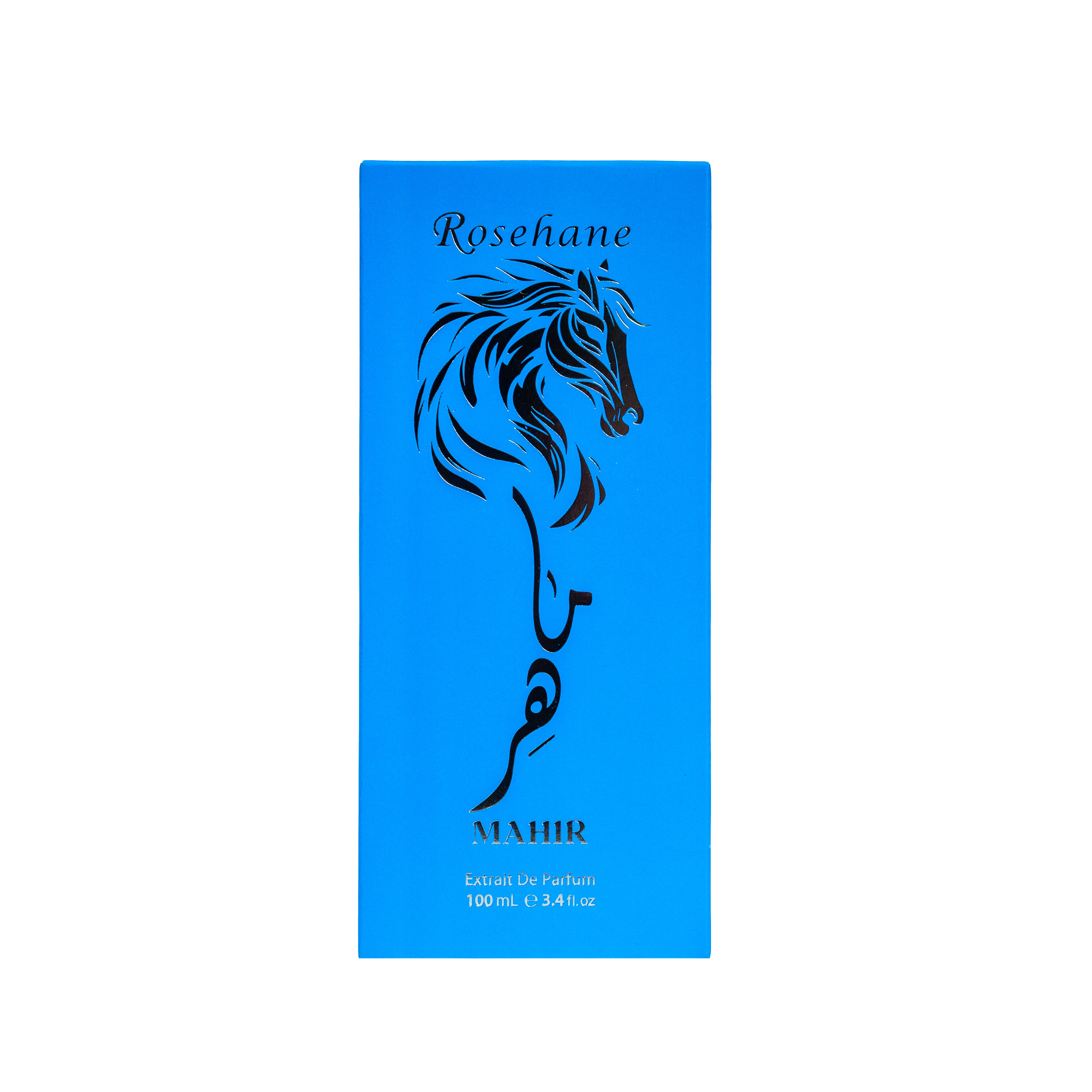 Parfumul Rosehane Mahir Blue este o creatie masculina eleganta dedicata barbatului modern, increzator si rafinat, simbolizat de capul maiestuos de cal negru care decoreaza capacul flaconului. Cuvantul "Mahir" evoca maiestria, abilitatea si excelenta - calitati ale barbatului care stapaneste arta de a trai cu stil. Aceasta varianta BLUE celebreaza prospetimea, claritatea si profunzimea prin culoarea albastru intens vibranta care evoca cerul senin si oceanul profund. Formulat ca Extrait de Parfum, aceasta concentratie premium de 100 ml ofera o persistenta remarcabila si o intensitate eleganta care inconjoara purtatorul intr-o aura de masculinitate rafinata si senzualitate controlata.