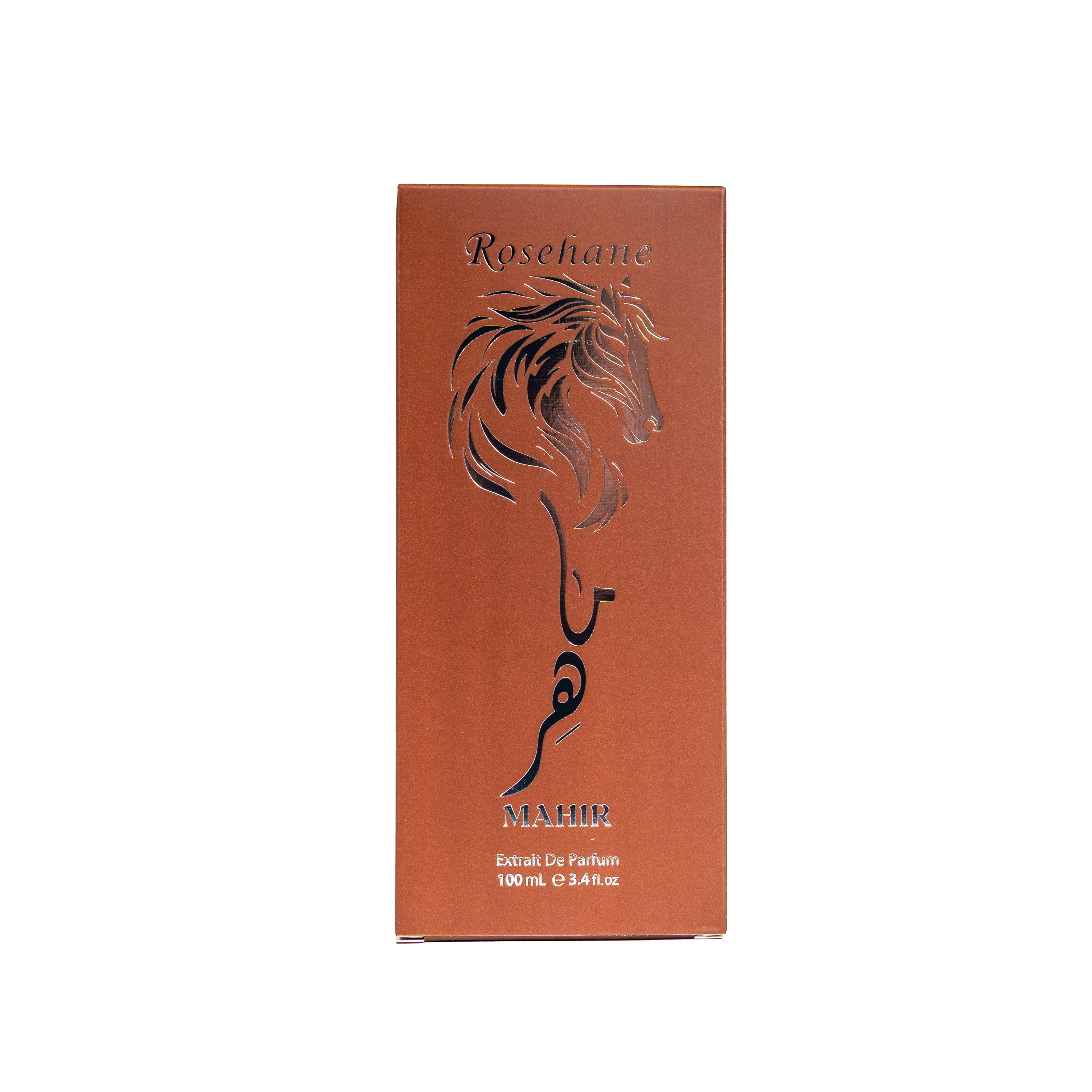 Mahir Brown celebreaza eleganta naturala, caldura si profunzimea prin culoarea maro-chihlimbar intensa - nuanta care evoca lemnul pretios vechi, pamantul nobil si chihlimbarul antic fosil. Maro-ul simbolizeaza stabilitatea, rafinamentul natural si eleganta fara ostentatie - calitati ale barbatului modern care prefera substanta in locul aparentei. Capul de cal argintiu pe capac si silueta in relief pe cutia maro simbolizeaza contrastul elegant intre prospetime si profunzime, modernitate si traditie, putere si rafinament.