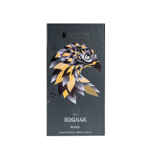 Rosehane Rounak Black continua povestea brandului ROUNAK, nascut in inima Istanbulului, oras unde Estul intalneste Vestul intr-un dans fascinant. Vulturul negru stilizat pe cutie simbolizeaza puterea, misterul si eleganta nocturna - caracteristici ale celor care poarta acest parfum sofisticat. ROUNAK Black nu este doar un parfum - este o expresie a strategiei tale de viata, a rafinamentului tau si a determinarii de a reusi. Cu fiecare aplicare, te inconjoara intr-o aura de incredere, eleganta si magnetism care atrage succesul. Pentru cei care apreciaza parfumurile echilibrate, versatile si rafinate, Rounak Black devine arma secreta olfactiva - tactica castigatoare care functioneaza intotdeauna.