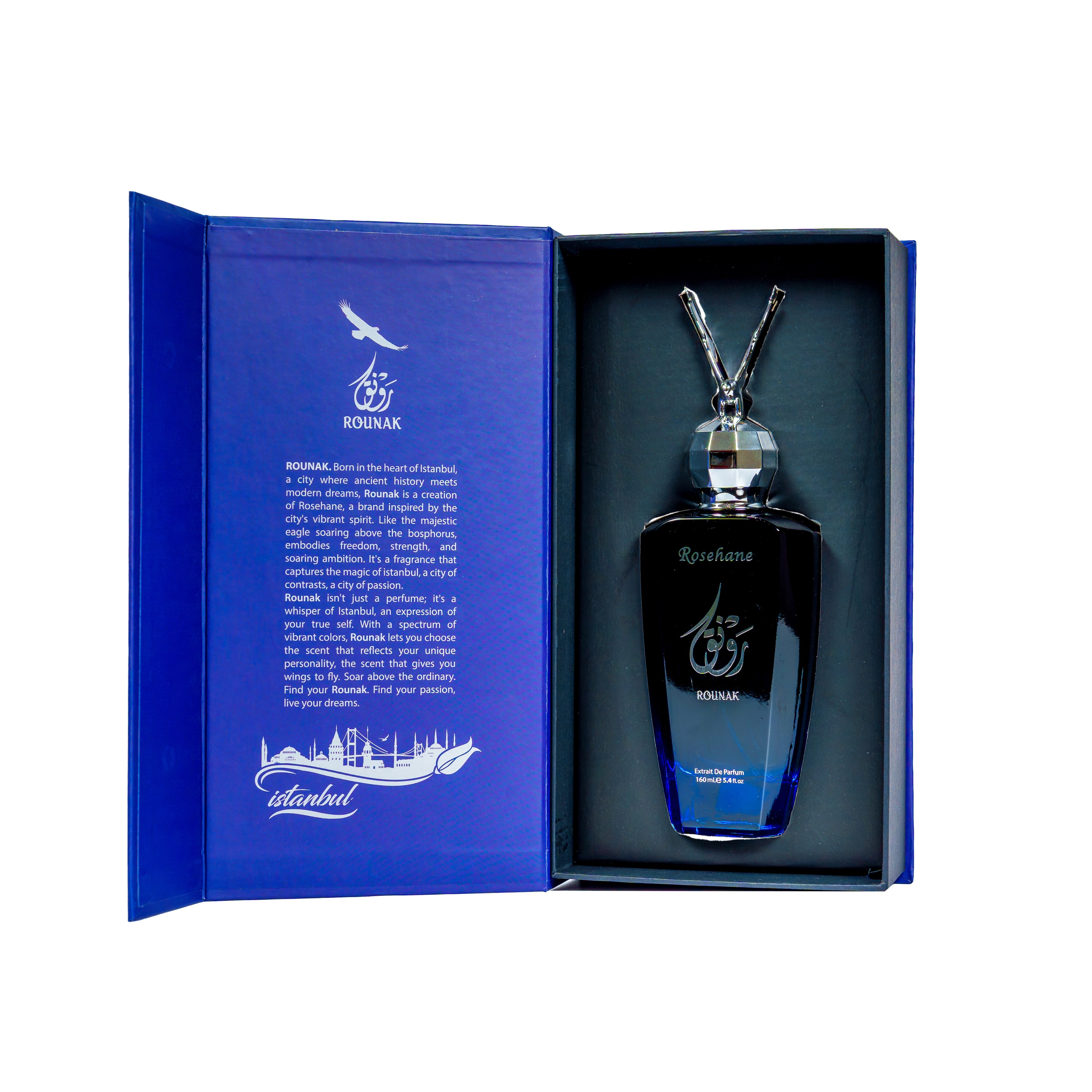 ROUNAK este nascut in inima Istanbulului, oras unde istoria antica se imbina cu visele moderne, unde Estul intalneste Vestul intr-o dans fascinant de culturi si traditii. Brandul este inspirat de vulturul maiestuos care zboara deasupra Bosforului, simbolizand libertatea, puterea si ambitia inalta. ROUNAK nu este doar un parfum - este o expresie a personalitatii tale autentice, aroma care iti ofera aripi sa zbori. Depaseste limitele cotidianului, gaseste-ti pasiunea si traieste-ti visele cu ROUNAK. Acest parfum captureaza magia Istanbulului si te invita sa te ridici deasupra ordinii si sa iti urmezi propriul drum.