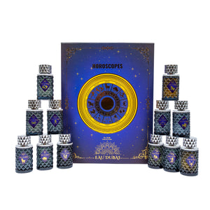 Descoperiti setul spectaculos EAU DUBAI Horoscopes - o colectie completa si unica de 12 extracte de parfum premium, fiecare dedicat unei zodii din horoscop, imbinand aromele distinctive si personalitatea fiecarui semn zodiacal intr-o experienta olfactiva extraordinara si personalizata.